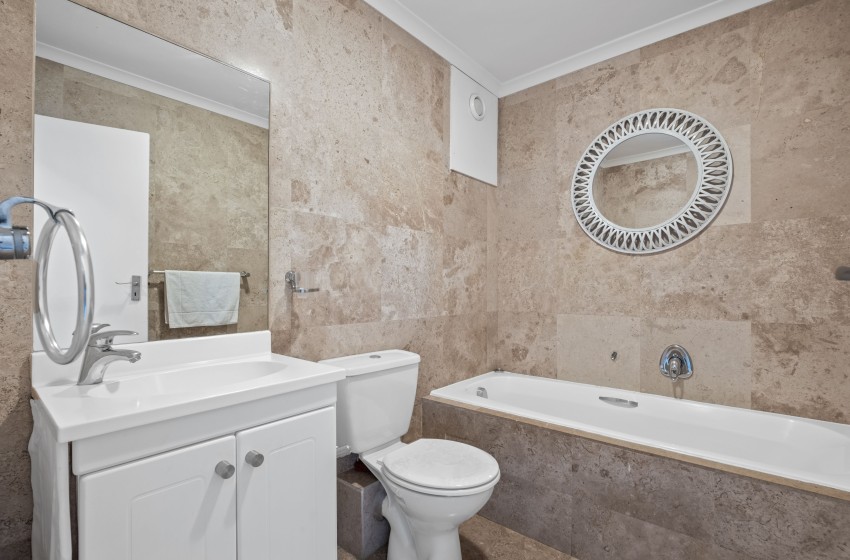 Boasting all amenities needed for a comfortable self-catered holiday, this apartment has luxurious decor in neutral shades providing a space to relax and reset. The open-plan living area has a fully-equipped kitchen and furnished lounge with a flat-screen TV with DSTV and WiFi. The balcony will treat you to a fantastic view with a picnic bench, perfect for outdoor dining or relaxing with sundowners as you admire the gorgeous twilight sky. The main bedroom has a queen bed, balcony access and an en-suite bathroom with a bathtub/shower combo. The second bedroom has a double bed, accessing the shared bathroom fitted with a shower.