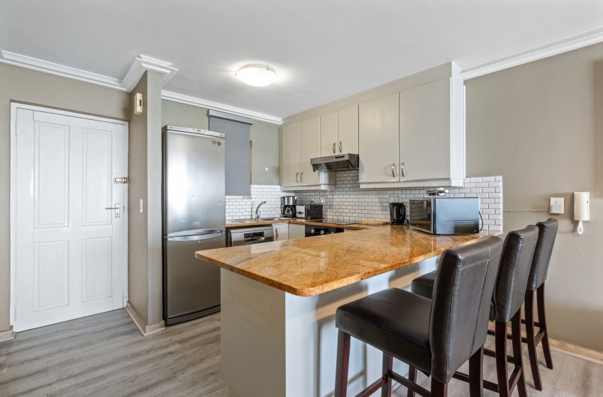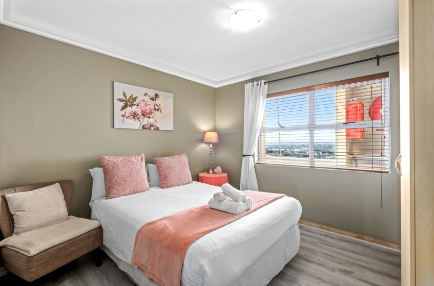 The apartment complex is only a few minutes walk from the beach. The building is accessed controlled, with secure parking available in an undercover parking bay for guests' safety. The coastal suburb of Bloubergstrand is a superb holiday destination with various establishments within walking distance of the apartment complex, some of them even facing the beachfront. Bloubergstrand ideally offers guests a convenient drive south to the Cape Town City Centre, while the luscious West Coast lies northward, featuring numerous charming towns and beautiful nature reserves to explore.