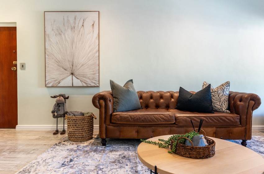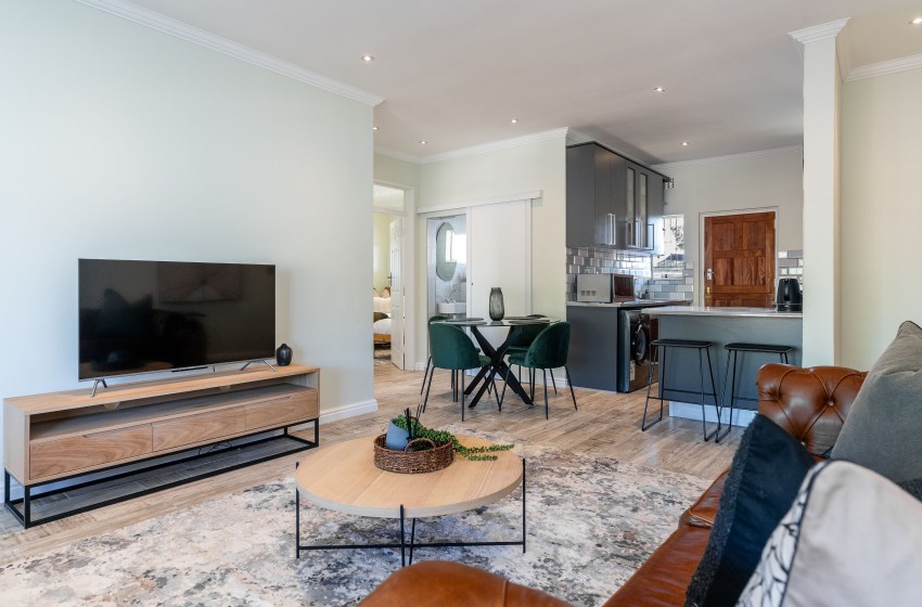 A modern place with trendy finishes, Tweede Boom gracefully embraces a calming colour scheme of warm brown and green tones. This quaint home can easily accommodate up to 4 guests and is tucked away in the coastal town of Gordons Bay. Its advantageous position puts you close to eateries, stores, and, of course, stunning surrounding beaches.